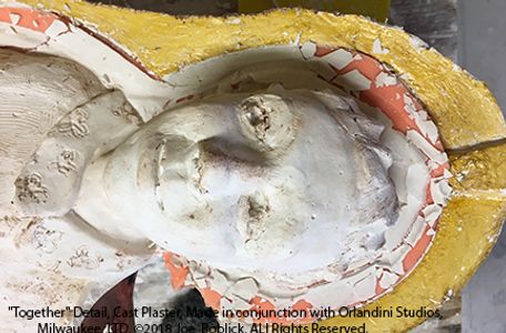 Left: "Together", detail, plaster cast, before removal from the mold.